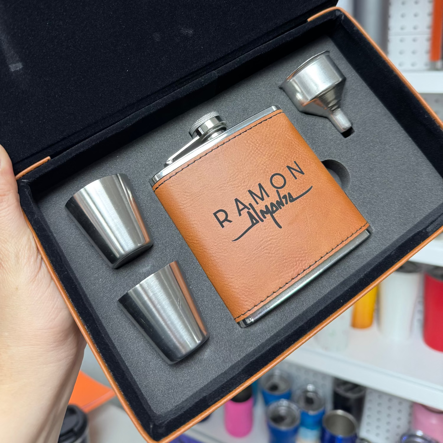 Set de Flask en Caja de Cuero Vegano